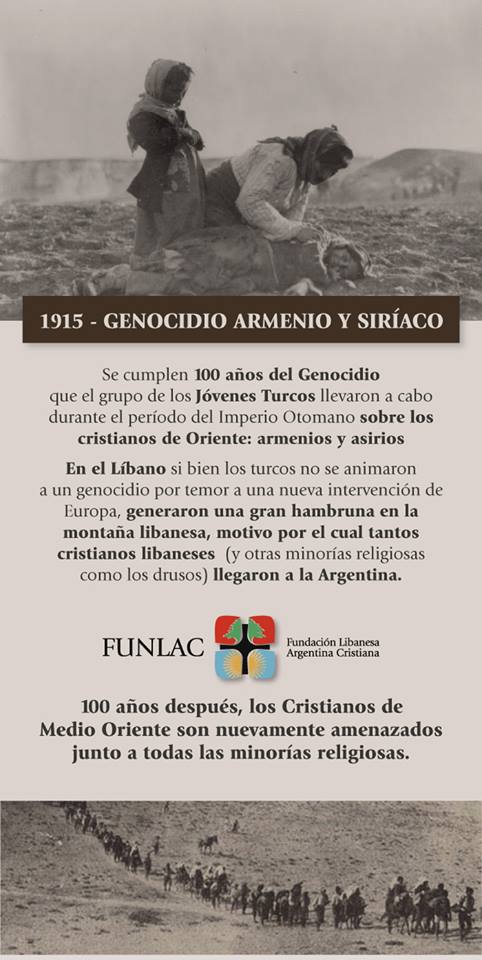 La presidente de la Fundación Libanesa La presidente de la Fundación Libanesa Argentina Cristiana, Lidia Naim, junto al asesor Daniel Asade, visitaron a Mons. Crisóstomo Gasali en la Iglesia San Efrén ubicada en el barrio porteño de Villa Ortúzar, donde intercambiaron opiniones acerca de la problemática actual que viven todos los cristianos de Medio Oriente. El hecho coincide con los 100 años del Genocidio Siríaco (que ocurrió al mismo tiempo del Armenio), en el que varias familias procedentes de Siria, Turquía e Iraq abandonaron sus hogares para refugiarse en Líbano, y de allí continuaron su "peregrinación" para llegar a la Argentina. También llegaron a la Argentina familias libanesas sirianas ortodoxas que vivían en el Líbano desde hacía siglos.