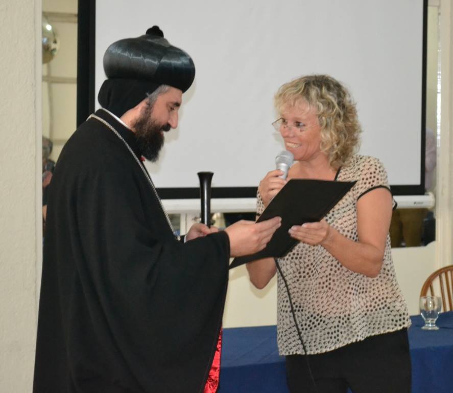 Especialmente invitado por el Arzobispad Especialmente invitado por el Arzobispado de Zárate-Campana, Monseñor Crisóstomo fue recibido por el Clero y seminaristas en la Catedral Santa Fiorentina de Campana. Rezó una oración en arameo frente al altar, por los mártires sirianos del genocidio de 1915 y de nuestros dí­as. Seguidamente realizó una ofrenda floral por los mártires ante el Crucifico. Dirigió unas palabras a los niños del catecismo. Otorgó su bendición a los presentes y al retirarse realizó otra oración. Las actividades continuaron en el Club Social de Campana donde fue recibido por una representante del municipio que dio lectura al decreto que lo declara Huésped Ilustre y le entregó una copia. Luego pronunció, ante una concurrencia de más de 100 personas, una conferencia sobre los mártires sirianos de 1915 y de nuestros dí­as y de los mártires cristianos de todos los tiempos. Concluida la Conferencia Monseñor participó de un almuerzo.