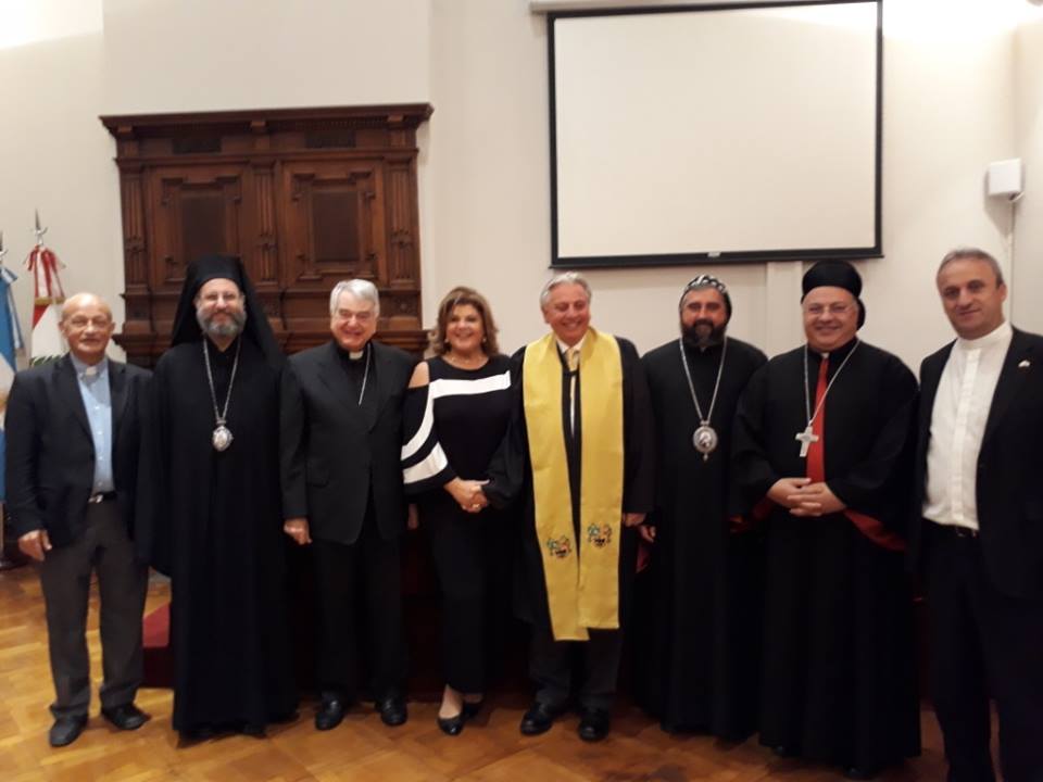 El dí­a martes 21 de noviembre de 2017, El dí­a martes 21 de noviembre de 2017, invitado por la Embajada del Lí­bano y la Universidad del Salvador, Mons. Crisóstomo participó en acto de distinción a Su Excelencia Emb. Antonio Andary con el tí­tulo de DOCTOR HONORIS CAUSA. Al fin del acto académico, Mons. Crisóstomo felicitó a Su Excelencia Dr. Antonio Andary deseándole el mayor éxito con la bendición de Dios. El evento tuvo lugar en la Universidad del Salvador en Buenos Aires, con la presencia el S.E.R. Monseñor Emilio Tscherrig Embajador del Vaticano en Argentina, Dr. Juan Alejandro Tobí­as, Rector de la Universidad del Salvador, Mons. Siluan Musi Metropolitano de la Iglesia Católica Apostólica Ortodoxa del Patriarcado de Antioquia, Mons. Habib Shamieh Exarca de la Iglesia Siriana Maronita, diplomáticos y amigos.