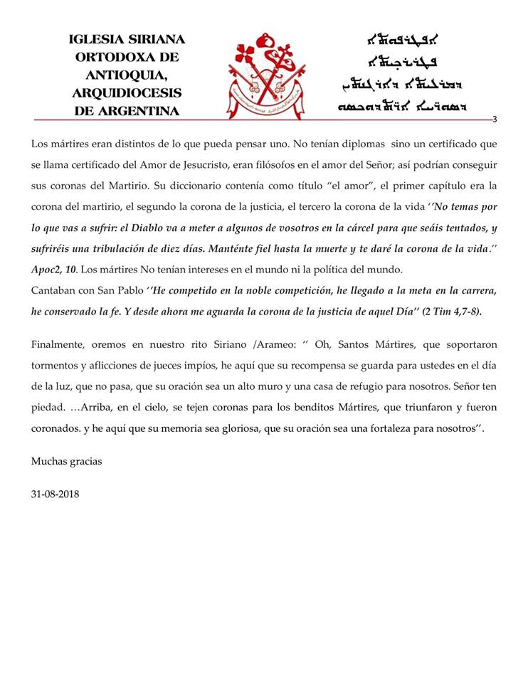 Homilía de Monseñor Crisóstomo en el Homilía de Monseñor Crisóstomo en el acto de conmemoración de los Mártires actuales del cristianismo, organizado por la Comisión del Ecumenismo de la Arquidiócesis de Buenos Aires. Viernes 31 de agosto. Iglesia de San Efrén - CABA.