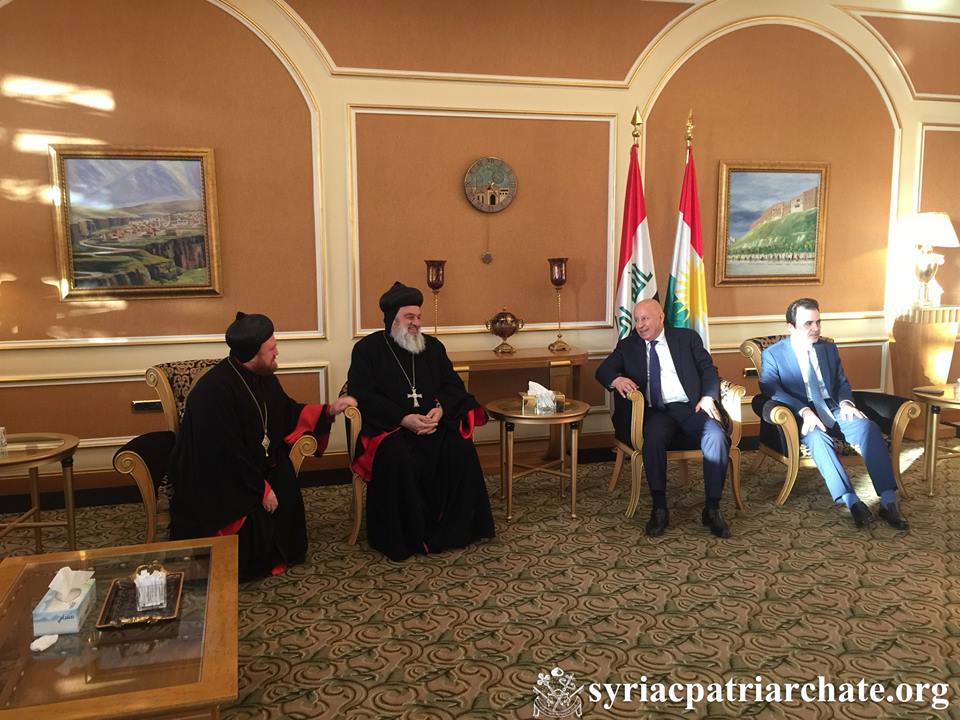 El 24 de enero de 2019, Su Santidad Patr El 24 de enero de 2019, Su Santidad Patriarca Mor Ignatius Aphrem II llegó al Aeropuerto Internacional de Erbil en Irak, en una visita apostólica durante la cual inaugurará la nueva sede de la Arquidiócesis de Mosul, Kirkuk y Kurdistán, en Erbil. Estuvo acompañado por sus Eminencias: Mor Justinos Boulos Safar, Vicario patriarcal en Zahle y Bekaa, Mor Timotheos Matta Al-Khoury, Vicario patriarcal en la Arquidiócesis patriarcal de Damasco, y Reverendísimo Raban Joseph Bali, Secretario patriarcal y Director de la Oficina de Medios. Su Santidad y la delegación que lo acompaña fueron recibidos en el aeropuerto por una delegación oficial del Gobierno Regional del Kurdistán, compuesta por Sus Excelencias: Sr. Karim sinjari, Ministro del Interior, Sr. Pishtiwan Sadiq, Ministro de Educación. Su Eminencia Mor Nicodemus Daoud Sharaf, Metropolitano de Mosul, Kirkuk y Kurdistán, así como sus Eminencias Arzobispos de Irak: Mor Gregorios Saliba Chamoun, Consejero Patriarcal, Mor Severius Hawa, Arzobispo de Bagdad y Basora, y Mor Timotheos Moussa Al-Shamani, arzobispo de la arquidiócesis del monasterio de Mor Mattai, y sus eminencias los arzobispos de las diversas iglesias cristianas en Irak también fueron a recibir a Su Santidad.