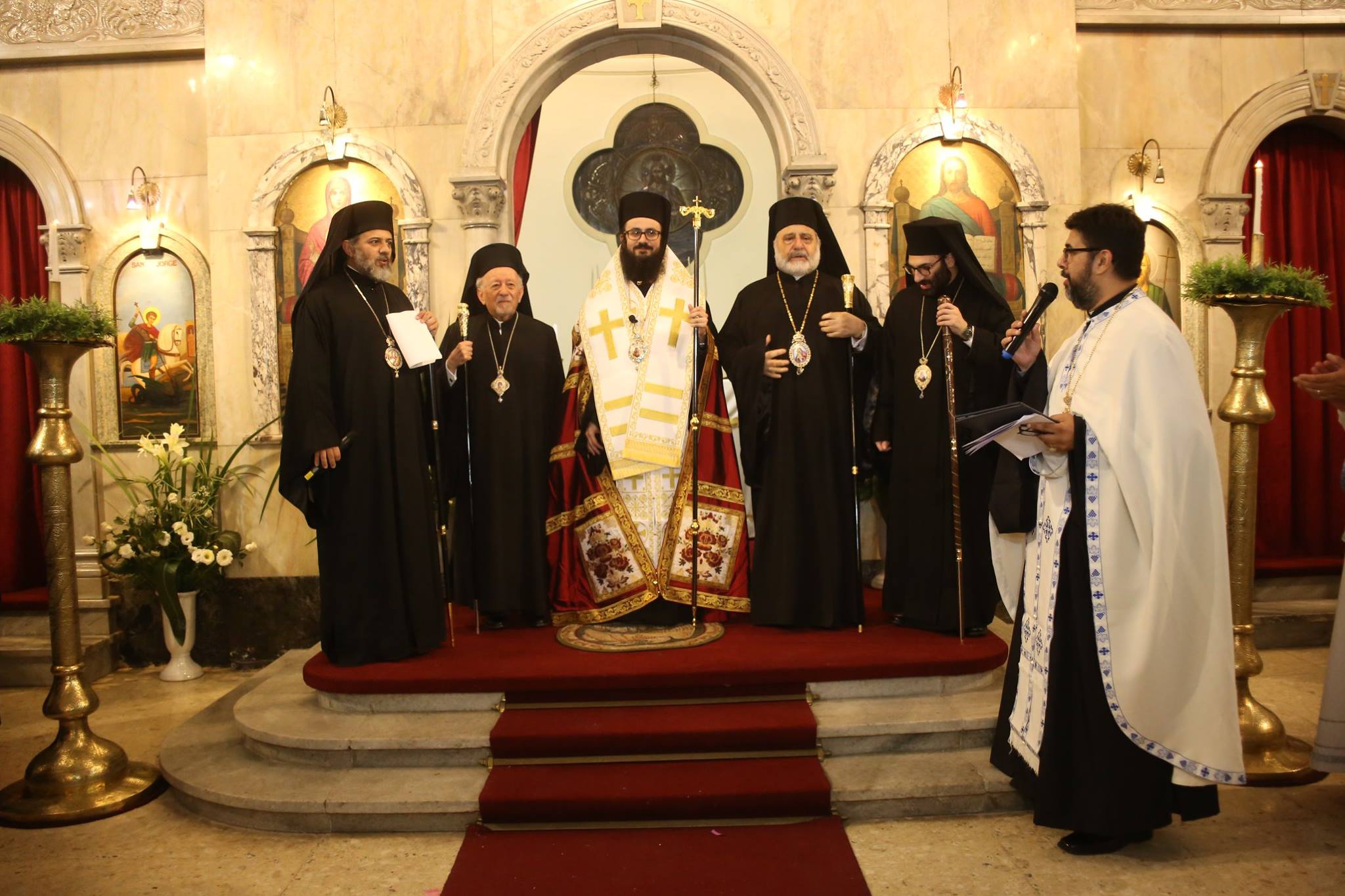 Cuatro Arzobispos del Patriarcado de Antioquía entronizaron a Mons. Santiago, S.E.R. Mons. Segios Abed de Chile; Mons. Damaskinos Manzur de San Pablo, Brasil; Mons. Ignacio Samaan de Mexico, Venezuela y El Caribe y Mons. Theodoro Ghandur Obispo y Vicario Patriarcal en Río de Janeiro.