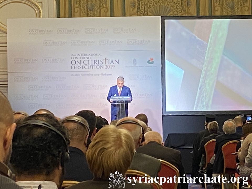 El Patriarca Su Santidad Mor Ignatius Ap El Patriarca Su Santidad Mor Ignatius Aphrem II participó en la sesión de apertura de la 2da Conferencia Internacional de Persecución Cristiana que se celebró en Budapest. En su discurso, Su Santidad habló sobre la falta de interés de la comunidad internacional en ayudar a los cristianos que sufren en el Medio Oriente. Añadió que debería haber un apoyo del fuerte estado secular donde todos los ciudadanos son iguales, así como levantar las sanciones impuestas injustamente a Siria. Su Excelencia el Sr. Victor Orban, Primer Ministro de Hungría, habló sobre la responsabilidad que Hungría asumió para apoyar a las comunidades cristianas en el Medio Oriente para que permanezcan en su tierra natal. Su Excelencia, el Sr. Tristan Azbej, Secretario de Estado para la Ayuda de los Cristianos Perseguidos, habló sobre el programa que Hungría Ayuda está brindando en apoyo de los cristianos y, por lo tanto, demostró que se necesitan acciones para ayudar a los cristianos en sus propios países a superar las dificultades a fin de permanecer allí