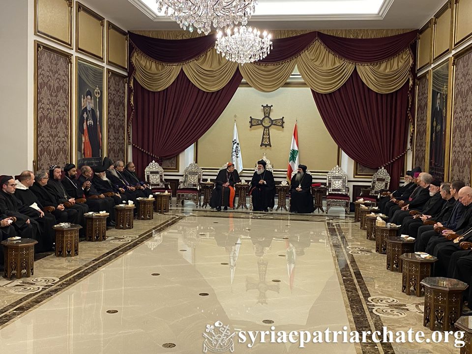 El 27 de enero de 2020, Su Santidad el P El 27 de enero de 2020, Su Santidad el Patriarca Mor Ignatius Aphrem II se reunió con los Copresidentes y miembros de la Comisión Conjunta Internacional para el Diálogo Teológico entre la Iglesia Católica y las Iglesias Ortodoxas Orientales, que celebra su reunión internacional en nuestra Iglesia Ortodoxa Siria en La Residencia Patriarcal - Atchaneh, Líbano. Después de la oración de la tarde, a la que asistieron los miembros de la Comisión Internacional, Su Santidad dio la bienvenida a sus invitados y destacó la importancia del diálogo entre las iglesias, sus diferentes etapas, así como el progreso realizado para acercar a las iglesias hacia la unidad en Cristo. Enfatizó el papel de las iglesias apostólicas en mantener la fe y las enseñanzas de los apóstoles y los padres. Su Santidad oró para que la Iglesia pueda seguir siendo el único cuerpo de Cristo, quien es su cabeza y sumo sacerdote. Apreciaba el trabajo del comité y los alentaba a continuar sus esfuerzos para unir las diferentes tradiciones de la iglesia. A su vez, los miembros de la comisión agradecieron a Su Santidad por su hospitalidad y a la Iglesia Ortodoxa Siríaca por organizar la reunión. Su Eminencia el Cardenal Kurt Koch, Presidente del Consejo Pontificio para la Promoción de la Unidad de los Cristianos y Copresidente de la Comisión, informó a Su Santidad sobre el trabajo de la Comisión y el tema de su reunión actual. Sus Eminencias, los miembros de la Comisión de las iglesias católicas y las Iglesias ortodoxas orientales, estuvieron presentes en la reunión. Arzobispos de Eminencias: Mor Theophilus Georges Saliba, Arzobispo del Monte Líbano y Trípoli, Mor Theophilose Kuriakose, Vicario Patriarcal en Europa, y Mor Polycarpus Augin Aydin, Vicario Patriarcal en los Países Bajos (Observador), quienes son los representantes de nuestra Iglesia Ortodoxa Siria en La comisión, también asistió a la reunión.