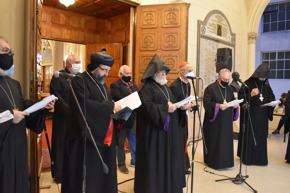 El miércoles 14 de octubre, el Arzobisp El miércoles 14 de octubre, el Arzobispo Crisóstomo participó en la oración por la paz celebrada en la Catedral San Gregorio Eliminador con presencia del Arzobispo Armenio Kisag Mouradian y del Cardenal Mario Poli.