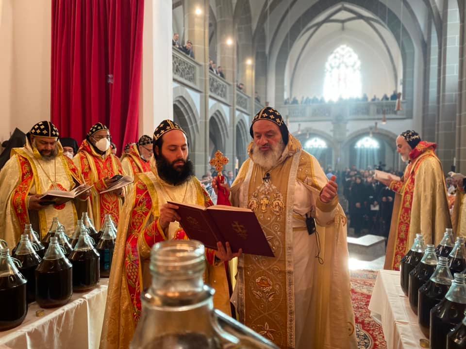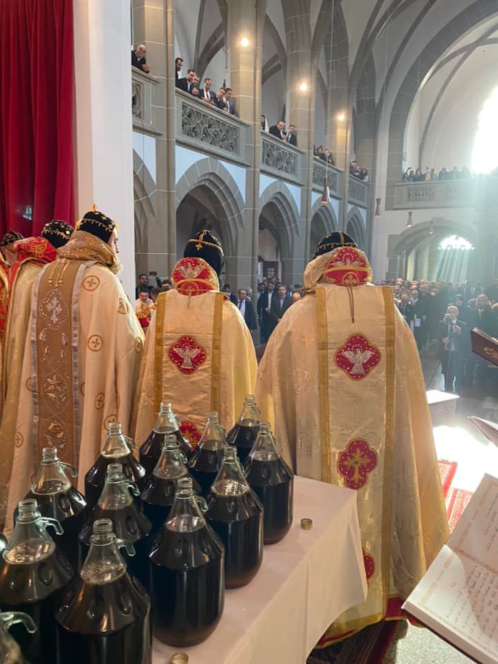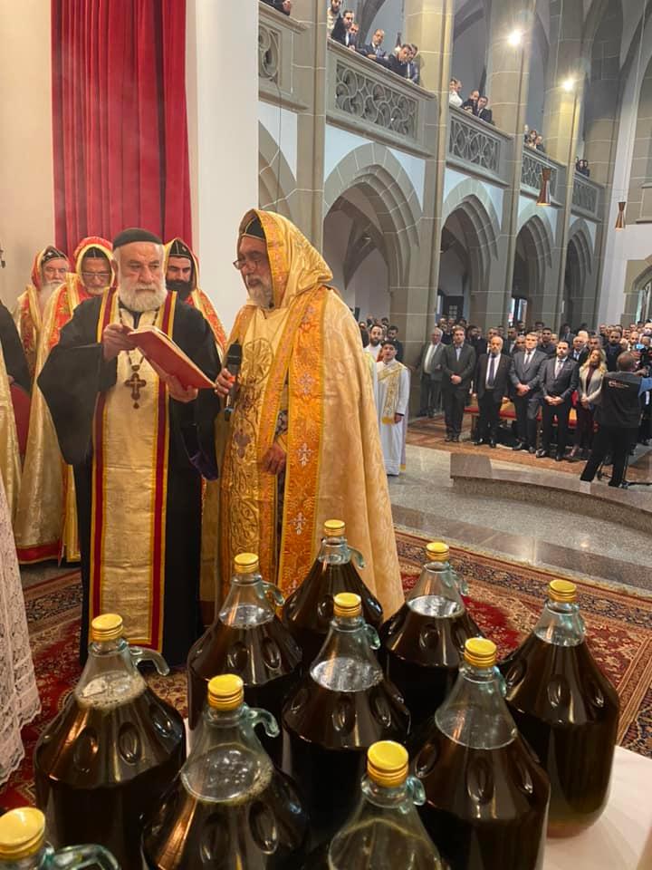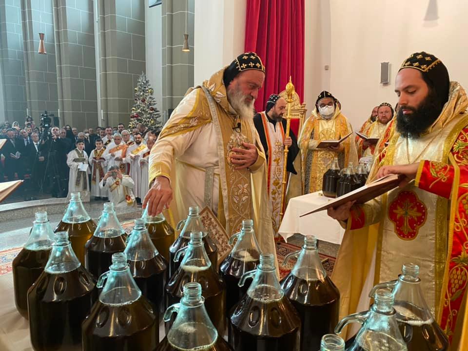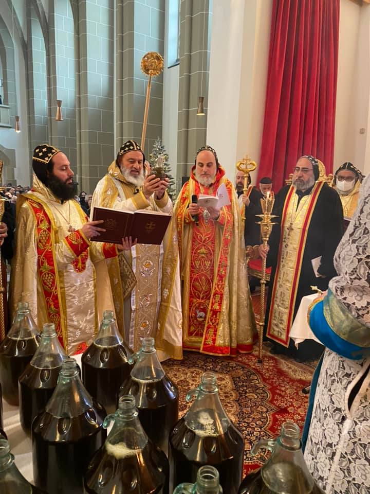 El 28 de noviembre de 2021, Su Santidad el Patriarca Mor Ignatius Aphrem II celebró la consagración del Santo Myron en el Monasterio Mor Jacob de Serough en Warburg - Alemania. Fue asistido por sus Eminencias Arzobispos: Mor Philoxenus Mattias Nayis, Vicario Patriarcal en Alemania, Mor Theophilus Georges Saliba, Arzobispo del Monte Líbano y Trípoli, Mor Gregorius Joseph, Metropolitano de Cochin y Síndico Metropolitano de la Iglesia Ortodoxa Siriana en India, Mor Dioscoros Benjamin Atas, Vicario Patriarcal en Suecia, Mor Severius Malke Mourad, Vicario Patriarcal en Brasil, Mor Dionysius Issa Gurbuz, Vicario Patriarcal en Suiza y Austria, Mor Philoxenus Saliba Ozmen, Arzobispo de Mardin y Diyarbakir, Mor Theethose Yeldho, Arzobispo de la Archidiócesis de Malankara en América del Norte, Mor Theophilos Kuriakose, Metropolitano del Seminario MSOT y Vicario Patriarcal en Europa, Mor Nicolaos Matta Abdelahad, Vicario Patriarcal en España, Mor Justinos Boulos Safar, Vicario Patriarcal en Zahleh y Beqaa, Mor Julius Hanna Aydin, Director de Relaciones Exteriores en Alemania, Mor Polycarpus Augin Aydin, Vicario Patriarcal en Holanda, Mor Dionysius Jean Kawak, Patriar chal Vicario de la Arquidiócesis del Este de los Estados Unidos de América, Mor Nicodemus Daoud Sharaf, Arzobispo de Mosul, Kirkuk, Kurdistán y alrededores, Mor Titus Boulos Touza, Nuncio Apostólico para las Misiones Siriacas en Brasil, Mor Timotheos Matta Al-Khoury, Arzobispo de Homs, Hama, Tartous y alrededores, Mor George Kourieh, Vicario Patriarcal en Bélgica, Francia y Luxemburgo, Mor Anthimos Jack Yakoub, Vicario Patriarcal para Asuntos de la Juventud y Educación Cristiana, Mor Cyril Babi, Vicario Patriarcal para la Archidiócesis Patriarcal de Damasco, y Mor Joseph Bali, Secretario Patriarcal y Director de la Oficina de Medios