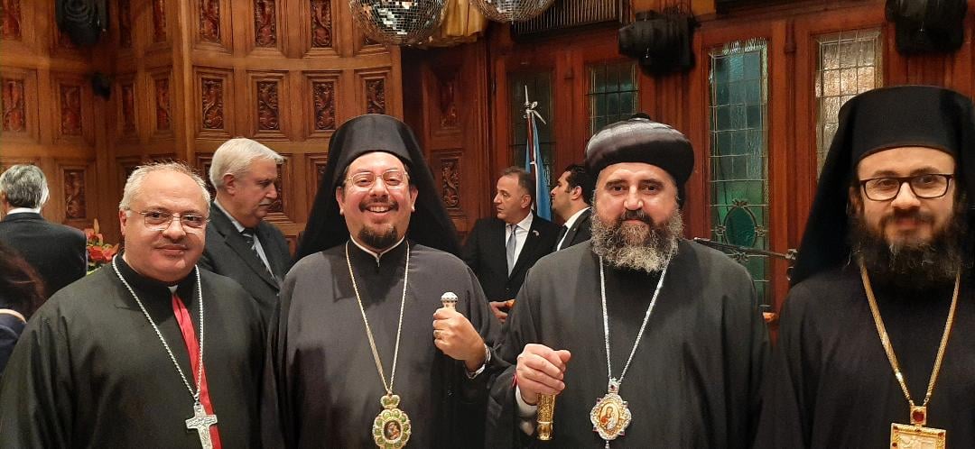 Con bendición de Dios, por invitación del Embajador de la República Árabe Siria en Argentina - Buenos Aires S.E. Dr. Sami Salameh, junto con el presidente del club Sirio Libanes en Buenos Aires, Sr. Yaoudat Ibrahim, el Arzobispo Crisóstomo participó en la ceremonia celebrada en el club Sirio Libanes en ocasión del 76º Aniversario de la Independencia de la República Árabe Siria.