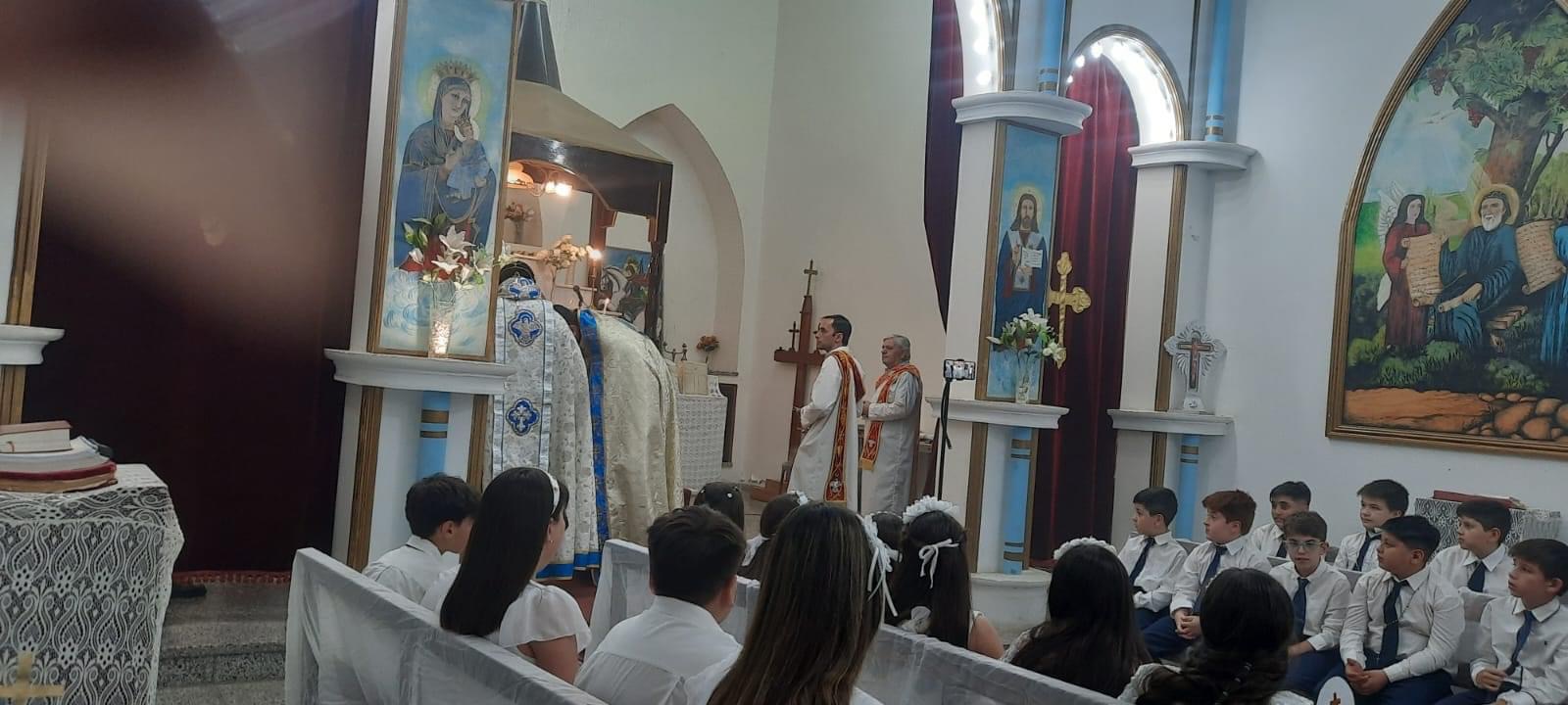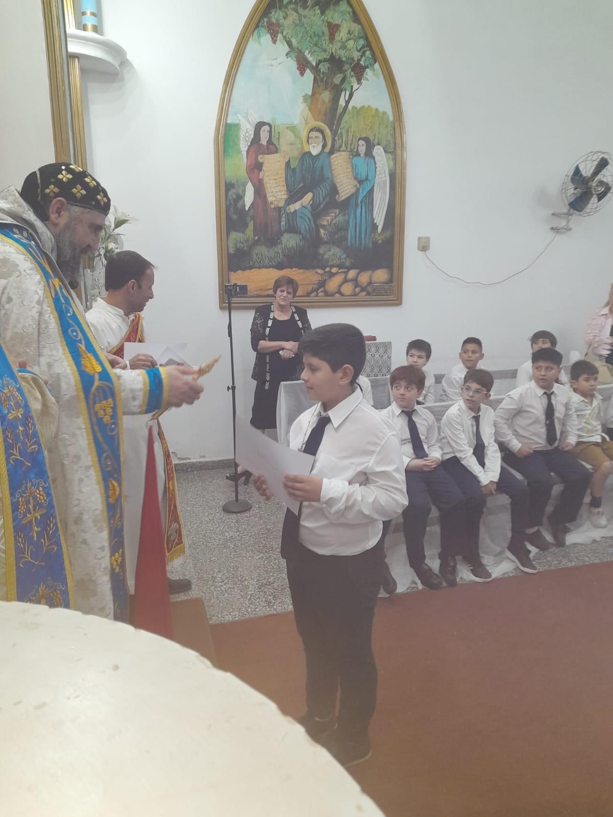 خلال القداس الالهي حصل 22 طفلاً من رعية مار جرجس على سر المناولة المقدسة.