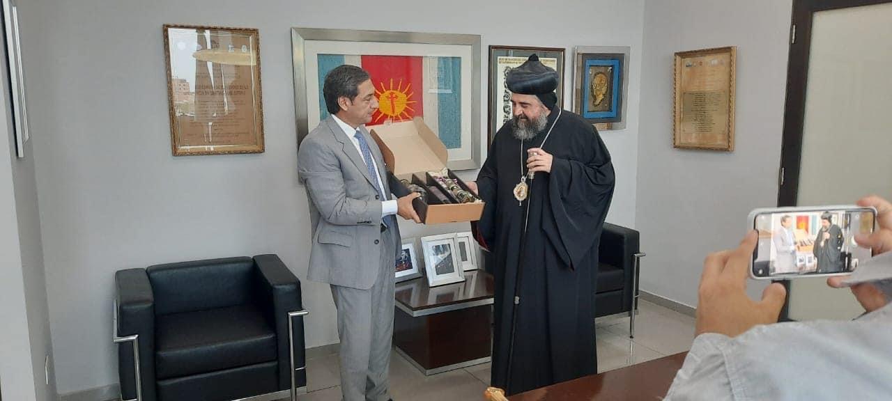 في نهاية اللقاء قدم مار كريسوستوموس هدية وهي صليب بركة للسيد نائب الحاكم والذي بدوره قدم لنيافته هدية مصنوعة من منتجات الولاية.