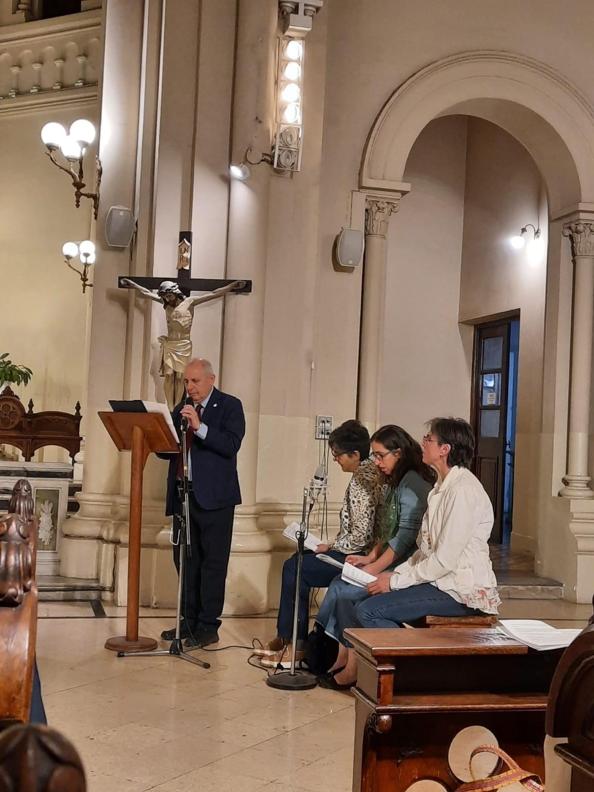 La oración tuvo lugar en la parroquia Santa Julia, Monseñor Crisóstomo ofreció meditación sobre Apocalipsis capítulo 7.