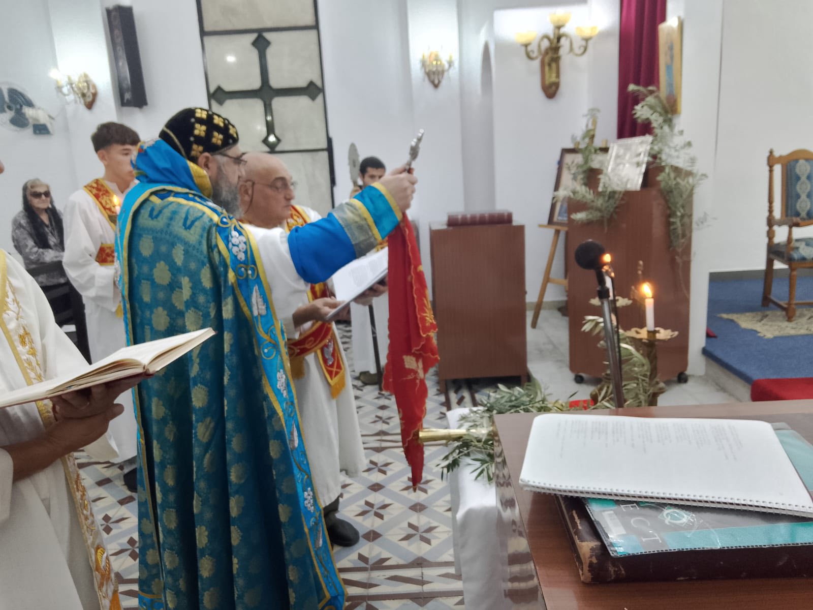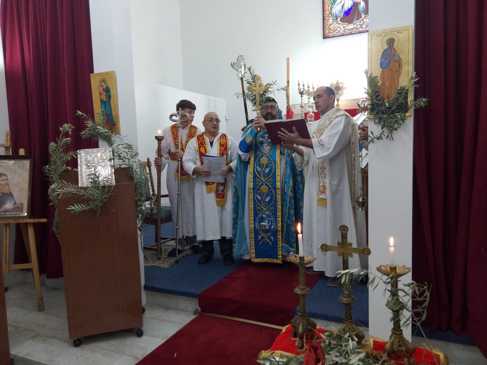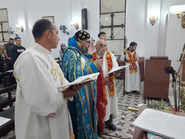 Durante la Divina Liturgia, después de la procesión, se celebró la ceremonia de bendición de los ramos y la exaltación de la Santa Cruz, según el Rito Siriano Ortodoxo. En su homilía, Mons. Crisóstomo destacó la importancia de recibir a Cristo con la misma fe, pureza y alegría que mostraron los habitantes y niños de Jerusalén, condición con la cual Él también nos recibirá en el cielo