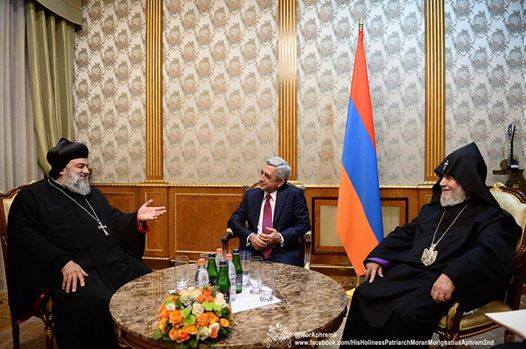 S. S. Moran Mor Ignacio Efrén II Patria S. S. Moran Mor Ignacio Efrén II Patriarca de la iglesia Siriana Ortodoxa de Antioquía y S.S. Karakin II Católicos de toda Armenia, de la Iglesia Armenia Ortodoxa de Etchmiadzin, visitan al Presidente de la República Armenia: Sr. Sergio Sarkisian.
