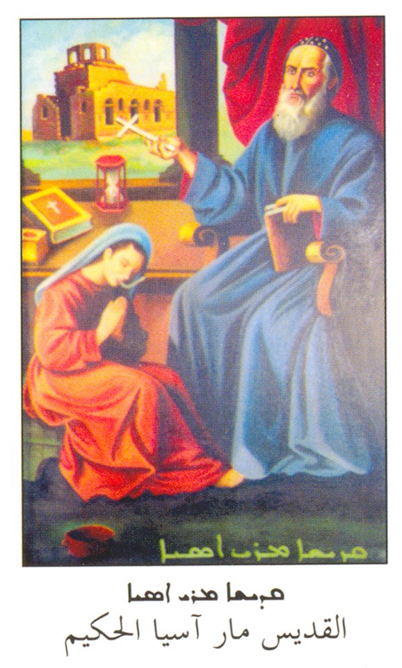 San Asia-Hakim (Asia en Siriaco signific San Asia-Hakim (Asia en Siriaco significa médico) nació en el siglo IV de padres Cristianos (Venteros y Jarjonaa). Su tío era el emperador Teodosio el Grande. Sus Padres no habían tenido hijos, pero con fe elevaron sus oraciones a Dios, Dios oyó sus súplicas y tuvieron un hijo. San Asia dejó el mundo y se hizo monje. Tuvo como maestro a Mar Dimit durante 10 años en el monte de Sión. Después de la muerte de Mar Dimit vivió como ermitaño unos 15 años. Posteriormente salió al mundo curando enfermos en nombre del Señor Jesucristo. Murió el 15 de octubre del año 377.