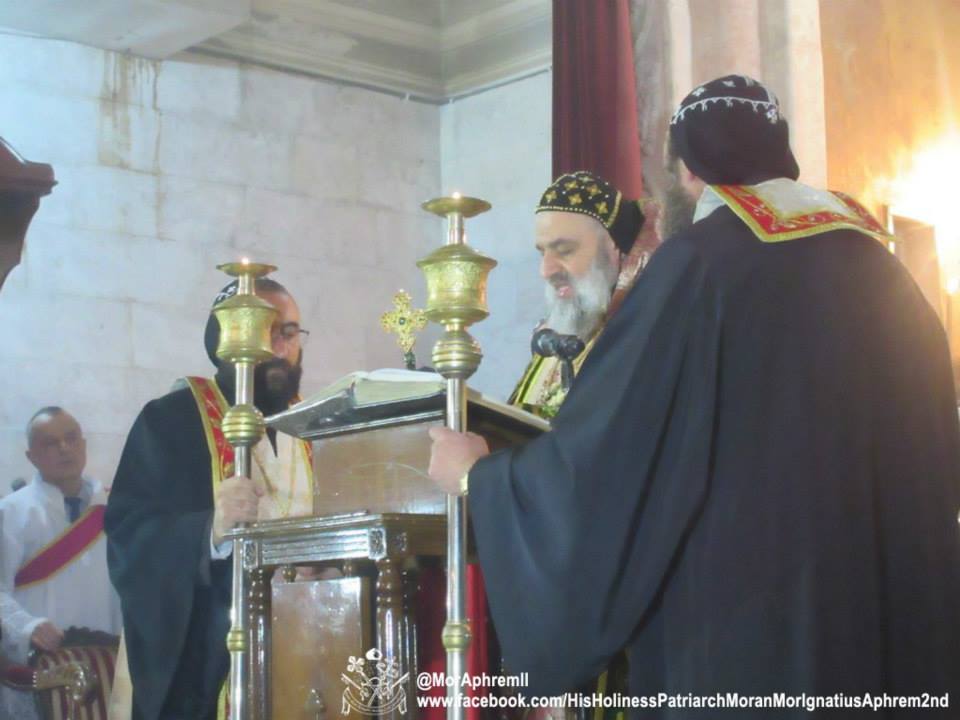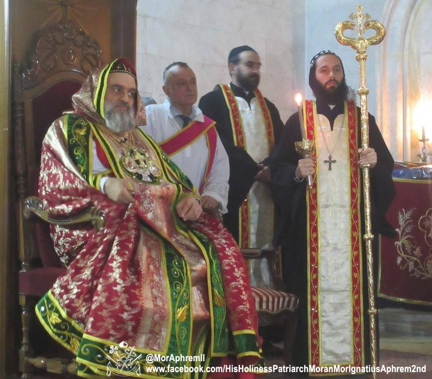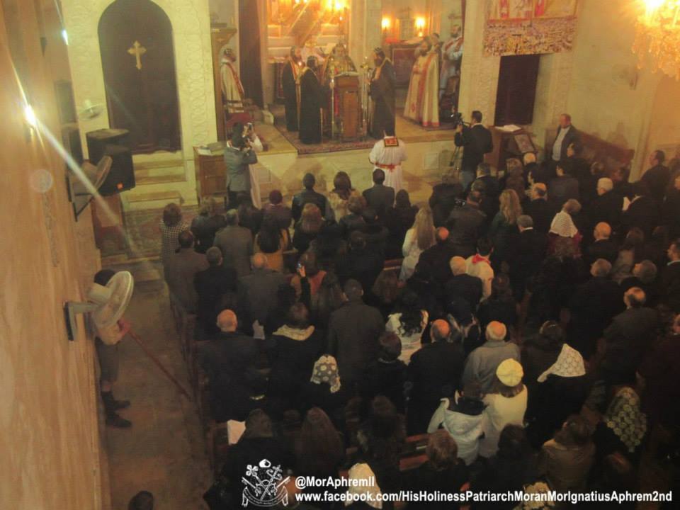 Su Santidad el Patriarca, Moran Mar Igna Su Santidad el Patriarca, Moran Mar Ignacio Aphrem II Karim, celebró la Divina Liturgia de Navidad en la Catedral de San Efrén de Alepo. En su homilía, Su Santidad dijo: "desearíamos que Su Eminencia Mor Gregorios Youhanna Ibrahim estuviera aquí con nosotros hoy". También habló de la alegría de la Navidad y la esperanza que trae a los que están en la desesperación. í‰l Patriarca oró para que el nuevo nacido, el niño de Belén, traiga la paz a Siria y toda la región de Oriente Medio.