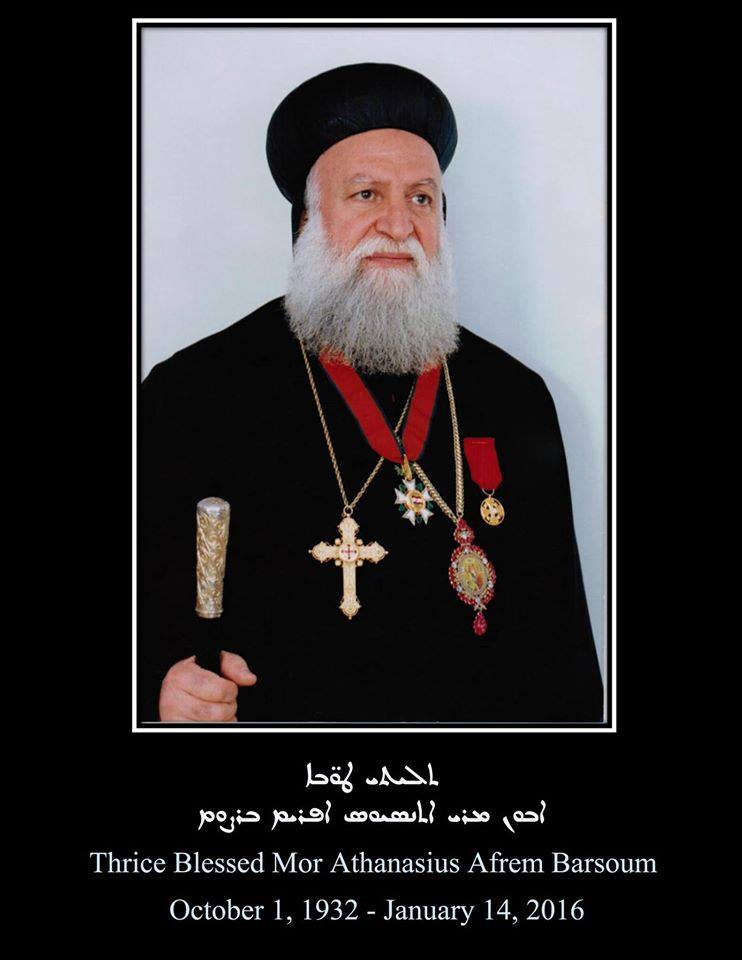 Su Santidad el Patriarca, Mor Ignacio Ef Su Santidad el Patriarca, Mor Ignacio Efrén II, Patriarca de Antioquía y Todo el Oriente, Jefe Supremo de la Iglesia Siriana Ortodoxa universal, Sus Eminencias, los arzobispos miembros del Santo Sínodo de Antioquía, y la Arquidiócesis de Beirut lamentan el fallecimiento del Ex -Arzobispo de Beirut, Mor Atanasio Aphrem Barsoum, Consejero patriarcal, quien falleció el jueves 14 enero, 2016 en EE.UU.
