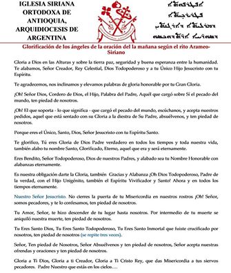 Noticias Previous Next Texto de la "Glorificación de los ínge Texto de la "Glorificación de los íngeles" en la oración de la mañana, según el rito Arameo-Siriano. Anterior Siguiente