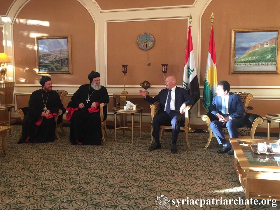 El 24 de enero de 2019, Su Santidad Patr El 24 de enero de 2019, Su Santidad Patriarca Mor Ignatius Aphrem II llegó al Aeropuerto Internacional de Erbil en Irak, en una visita apostólica durante la cual inaugurará la nueva sede de la Arquidiócesis de Mosul, Kirkuk y Kurdistán, en Erbil. Estuvo acompañado por sus Eminencias: Mor Justinos Boulos Safar, Vicario patriarcal en Zahle y Bekaa, Mor Timotheos Matta Al-Khoury, Vicario patriarcal en la Arquidiócesis patriarcal de Damasco, y Reverendísimo Raban Joseph Bali, Secretario patriarcal y Director de la Oficina de Medios. Su Santidad y la delegación que lo acompaña fueron recibidos en el aeropuerto por una delegación oficial del Gobierno Regional del Kurdistán, compuesta por Sus Excelencias: Sr. Karim sinjari, Ministro del Interior, Sr. Pishtiwan Sadiq, Ministro de Educación. Su Eminencia Mor Nicodemus Daoud Sharaf, Metropolitano de Mosul, Kirkuk y Kurdistán, así como sus Eminencias Arzobispos de Irak: Mor Gregorios Saliba Chamoun, Consejero Patriarcal, Mor Severius Hawa, Arzobispo de Bagdad y Basora, y Mor Timotheos Moussa Al-Shamani, arzobispo de la arquidiócesis del monasterio de Mor Mattai, y sus eminencias los arzobispos de las diversas iglesias cristianas en Irak también fueron a recibir a Su Santidad.