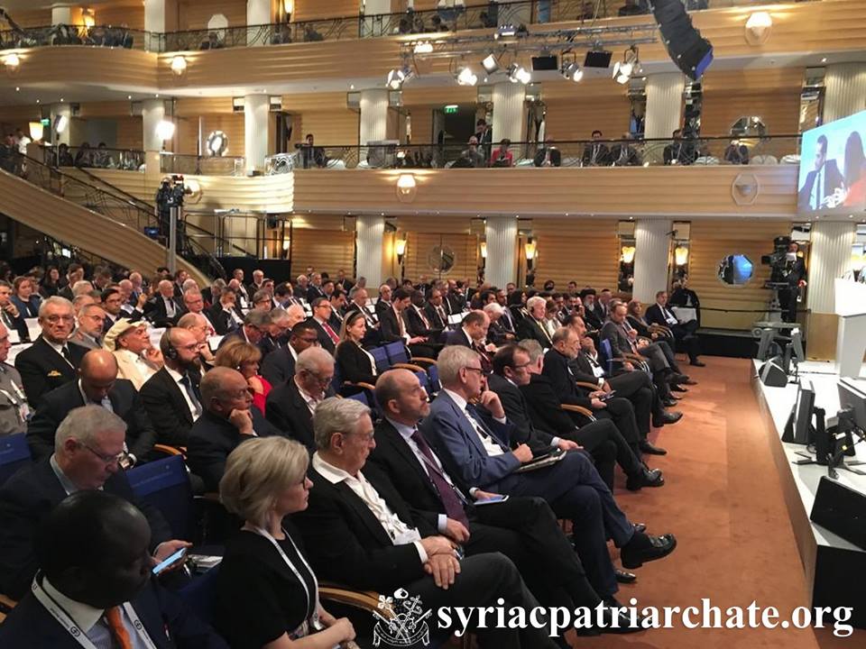 Durante el panel al que asistieron representantes de los Ministerios de Relaciones Exteriores de los Estados Unidos de América y Rusia, así como los Ministros de Defensa del Líbano y Turquía, Su Santidad señaló que una de las premisas y promesas de la llamada primavera en el Medio Oriente fue el comienzo de una nueva etapa de democracia donde las personas tienen el derecho de decidir su propio futuro y forma de gobernar. Preguntó: ¿Por qué se les prohíbe a los sirios decidir su propio futuro?