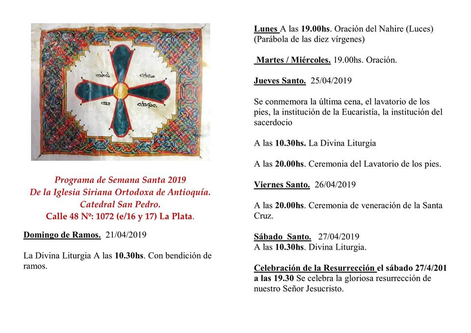Noticias Previous Next Programa de Semana Santa 2019. Ceremonia Programa de Semana Santa 2019. Ceremonias a celebrarse en la Catedral San Pedro de La Plata (48 N°: 1072, e/16 y 17) Anterior Siguiente