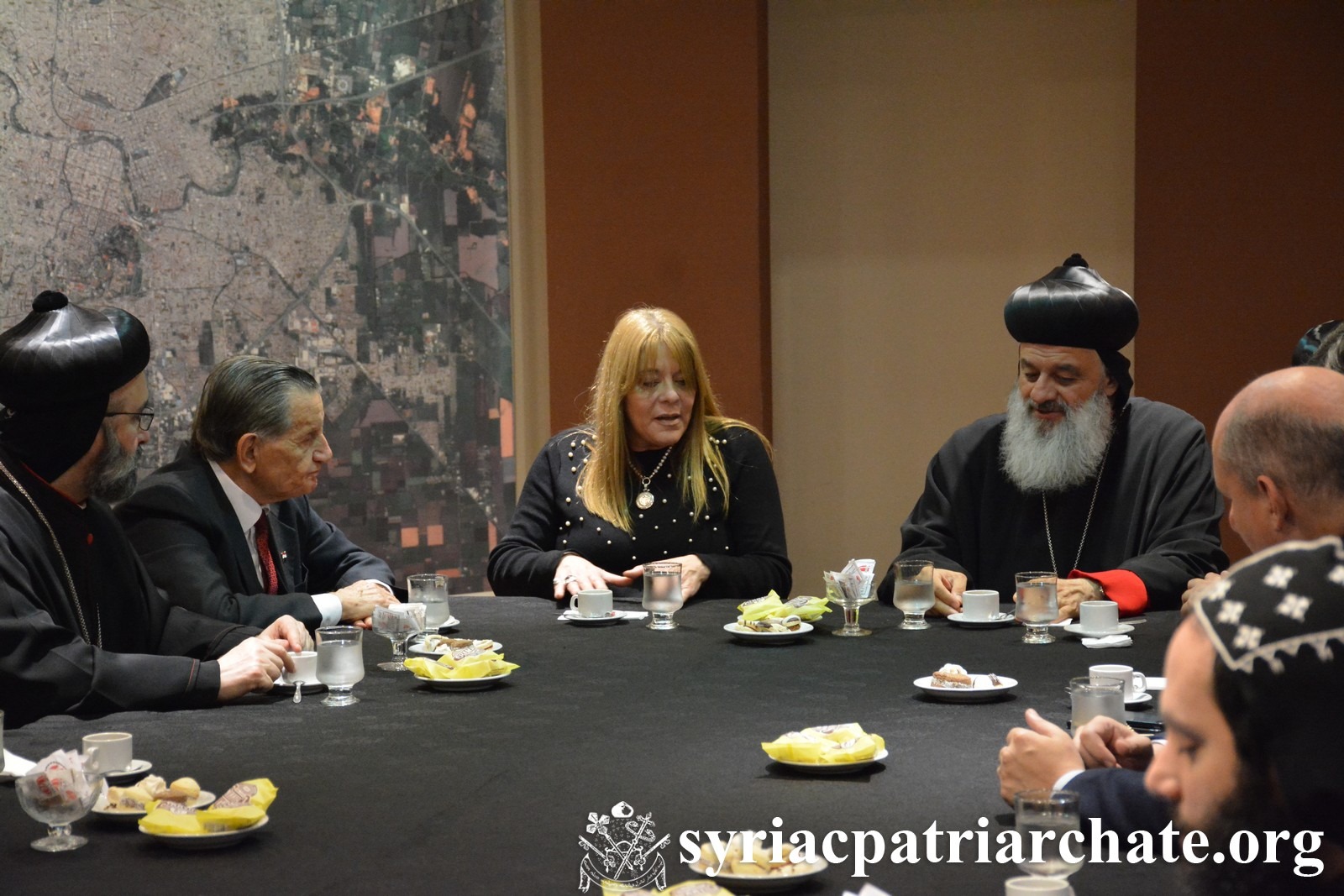 Su Santidad estuvo acompañado por sus E Su Santidad estuvo acompañado por sus Eminencias: Mor Chrysostomos Youhanna Ghassaly, Vicario Patriarcal en Argentina, Mor Chrysostomos Mikhael Shemoun, Vicario Patriarcal y Director de las Instituciones Patriarcales de Beneficencia en Atchaneh, y el Reverendísimo Raban Joseph Bali, Secretario Patriarcal y Director de la Oficina de Medios. Se reunió con miembros del consejo municipal en presencia del Honorable Cónsul de Siria en Córdoba, el Sr. Abdallah Saddi.