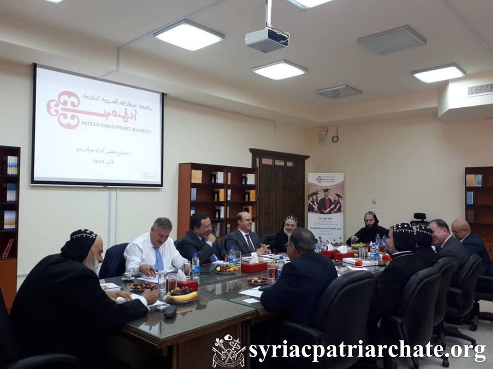 El 8 de agosto de 2019, Su Santidad el P El 8 de agosto de 2019, Su Santidad el Patriarca Mor Ignacio Efrén II presidió la reunión de la Junta Administrativa de "Renyo" (la empresa propietaria de la Universidad Siriana de Antioquía), que se celebró en la sede de la Universidad en Maarat Saydnaya.