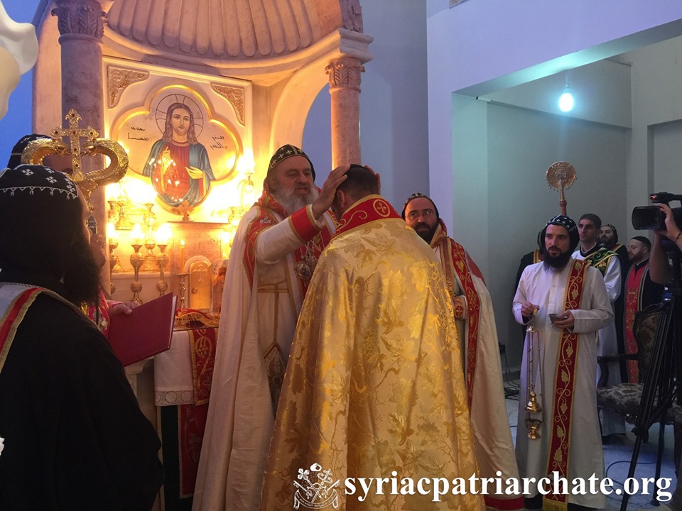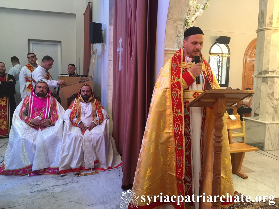 Fue asistido por sus Eminencias: Mor Timotheos Matta Al-Khoury, Vicario Patriarcal en la Arquidiócesis Patriarcal de Damasco, Mor Maurice Amsih, Arzobispo de Jazeera y Eufrates y Mor Anthimos Jack Yakoub, Vicario Patriarcal para Asuntos de la Juventud y Educación Cristiana.