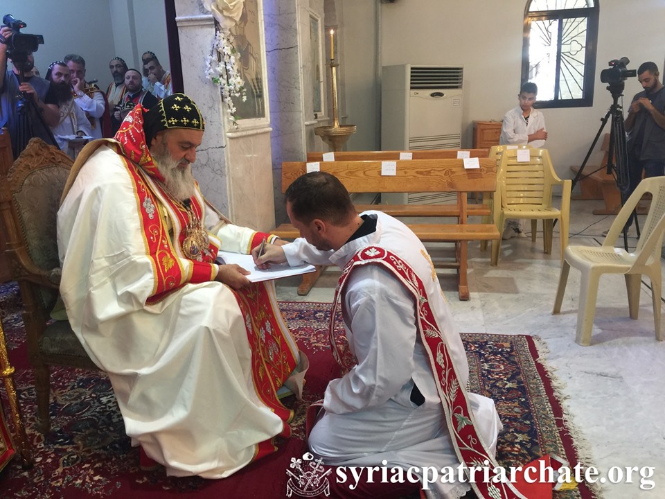 Durante la Sagrada Eucaristía, Su Santidad ordenó al Diácono Gabriel Al-Khoury para ser sacerdote en la Arquidiócesis Patriarcal de Damasco.