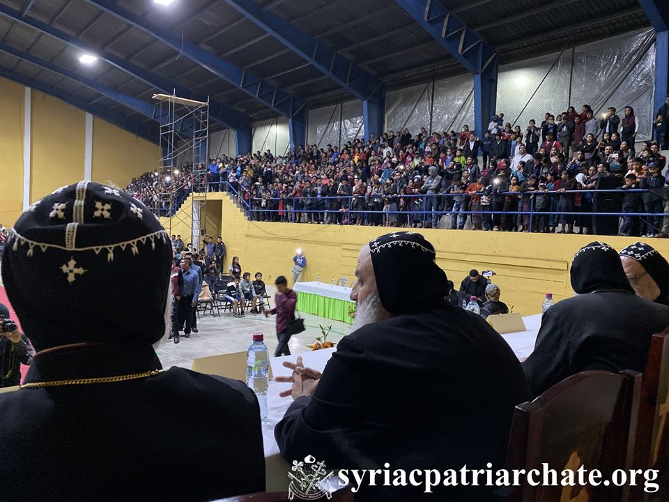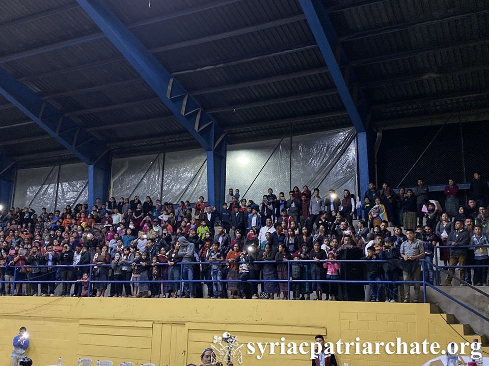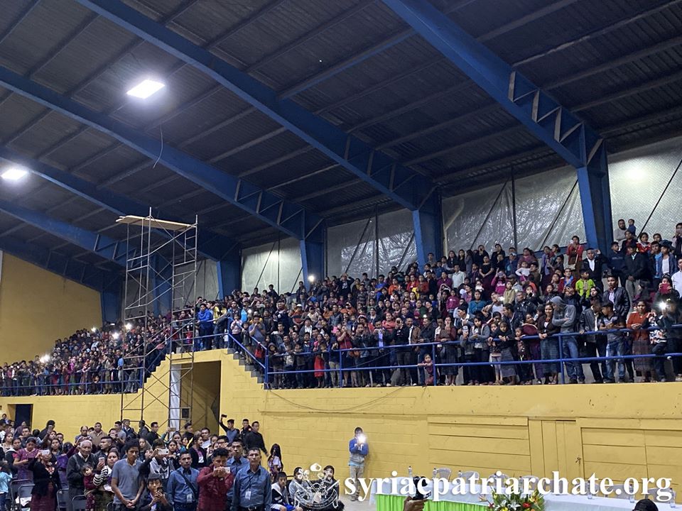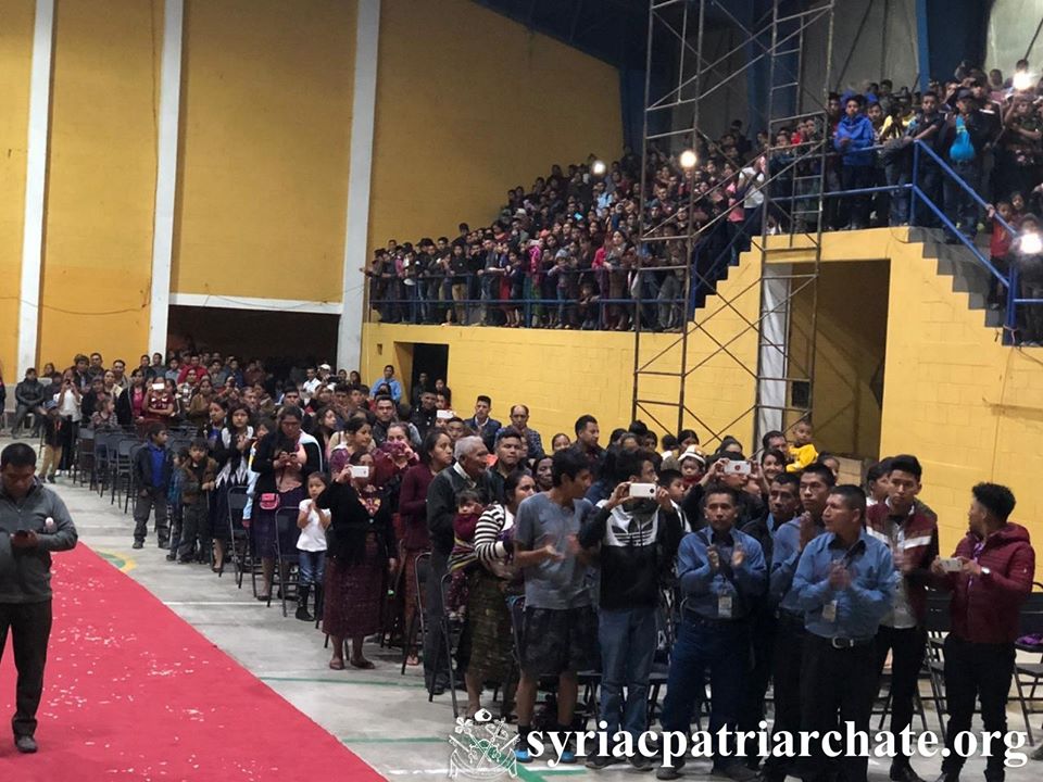El 11 de noviembre de 2019, Su Santidad El 11 de noviembre de 2019, Su Santidad el Patriarca Mor Ignacio Efrén II se reunió con multitudes de fieles que se reunieron en el Gymasium Municipal en Barillas - Guatemala. Su Santidad estuvo acompañado por sus arzobispos de Eminences: Mor Yacoub Eduardo, arzobispo de América Central, Mor Clemis Eugene Kaplan, vicario patriarcal de la arquidiócesis para el oeste de los Estados Unidos, Mor Selwanos Boutros Al-Nehmeh, arzobispo de Homs, Hama, Tartous y alrededores, Mor Dionysius John Kawak, Vicario patriarcal de la Arquidiócesis para el este de los Estados Unidos. Su Eminencia Mor Yacoub Eduardo dio la bienvenida a Su Santidad y a la delegación acompañante y se dirigió a las multitudes diciéndoles cuán grandioso es este dí­a histórico porque el Patriarca de Antioquí­a se encuentra entre ellos y los visita a pesar de su ubicación, que es difí­cil de alcanzar. Les dijo que recibieran la paz y el amor que Su Santidad trajo consigo de Antioquí­a, la ciudad donde nació el cristianismo, y donde San Pedro, el Jefe de los Apóstoles, estableció su sede. Mor Yacoub Eduardo agradeció a Su Santidad y le pidió que bendijera a las personas que se reunieron para recibirlo. Su Santidad se dirigió a las multitudes expresando primero su agradecimiento al Señor por la oportunidad de poder visitar este rebaño de Cristo a pesar de estar alejado y en un área que es muy difí­cil de alcanzar. Su Santidad habló sobre el sufrimiento como una marca de la iglesia y que la persecución es una parte necesaria de la historia del crecimiento de la iglesia. Hizo hincapié en que la promesa del Señor de que í‰l conquistó el mundo es un estí­mulo y una esperanza para todos aquellos que sufren por el bien de la verdadera fe. Les dijo que su presencia en la Iglesia Siriana Ortodoxa de Antioquia es un signo de la obra de Dios en sus vidas y en la vida de la Santa Iglesia. Concluyó diciéndoles lo orgulloso que está de ellos y que su cálida bienvenida tocó su corazón y lo llenó de alegrí­a y lágrimas; Su Santidad oró para que Dios los bendiga a ellos y a sus familias y los proteja, fortaleciéndolos para permanecer firmes en su fe a pesar de las tribulaciones y persecuciones.