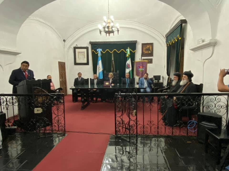 El 16 de noviembre de 2019, Su Santidad El 16 de noviembre de 2019, Su Santidad el Patriarca Mor Ignacio Efrén II se reunió con Su Excelencia la Sra. Susana Asension, Alcaldesa de Antigua en la sede de la Municipalidad en Antigua - Guatemala. Su Santidad estuvo acompañado por sus arzobispos de Eminences: Mor Yacoub Eduardo, arzobispo de América Central, Mor Clemis Eugene Kaplan, vicario patriarcal de la arquidiócesis para el oeste de los EE. UU., Mor Selwanos Boutros Al-Nehmeh, arzobispo de Homs, Hama, Tartous y alrededores. Su Excelencia dio la bienvenida a Su Santidad "en su ciudad" y lo declaró como el invitado de honor de Antigua. En su discurso, Su Santidad agradeció al Alcalde por el amor y el honor mostrado por el pueblo de Antigua. Habló sobre las similitudes entre los pueblos de Guatemala y los países de Medio Oriente, especialmente en su firme apego a los principios de libertad y dignidad humana, además de las condiciones en que vivieron en el siglo pasado. Su Santidad esperaba que los sacrificios de los mártires se convirtieran en una bendición para estos países y para la seguridad, paz, estabilidad, desarrollo y prosperidad de estos países.