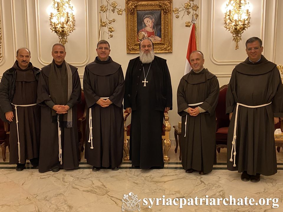El 17 de diciembre de 2019, Su Santidad El 17 de diciembre de 2019, Su Santidad el Patriarca Mor Ignatius Aphrem II recibió al P. Fr. Firas Loufti, Superior regional de los monjes de la Orden de los franciscanos en el Lí­bano, Siria y Jordania, con una delegación de monjes de la orden, en la sede del Patriarcado en Bab Touma, Damasco. A la reunión asistió el Muy Rev. Raban Joseph Bali, Secretario Patriarcal y Director de la Oficina de Medios. Su Santidad habló con sus invitados sobre la situación general en Siria. También discutieron las diferentes formas en que la Iglesia está ministrando y atendiendo las necesidades de los refugiados y los afectados por la crisis.