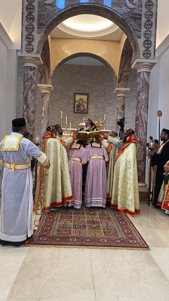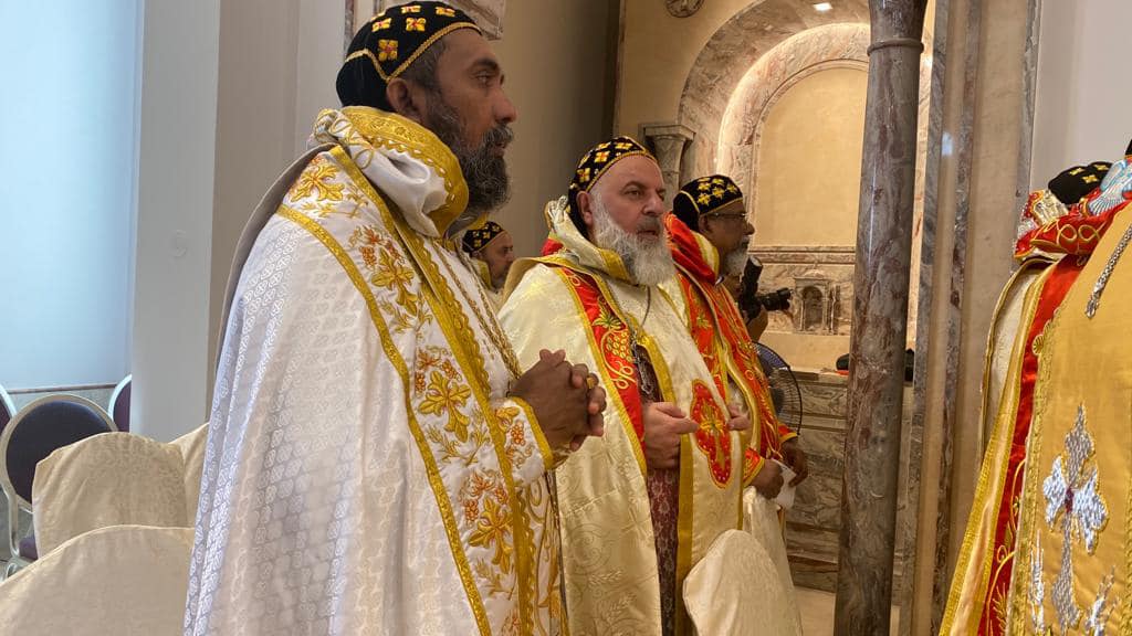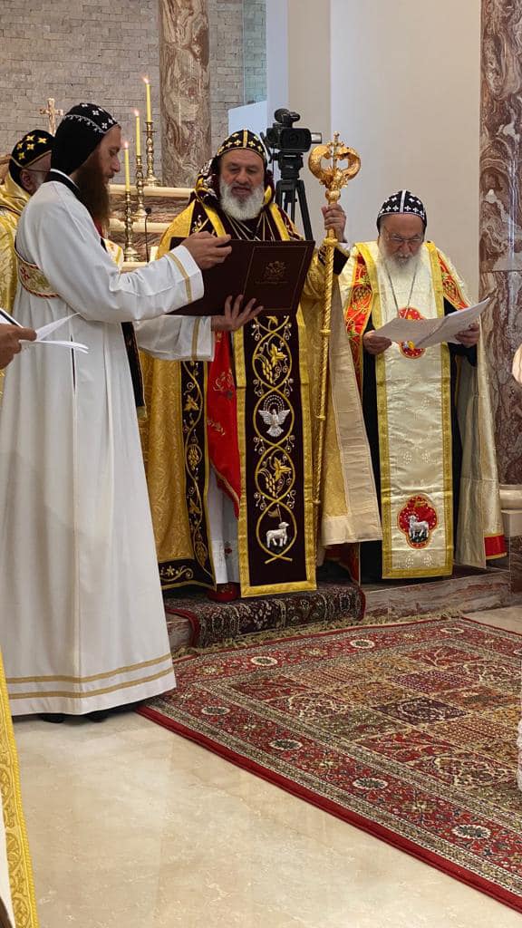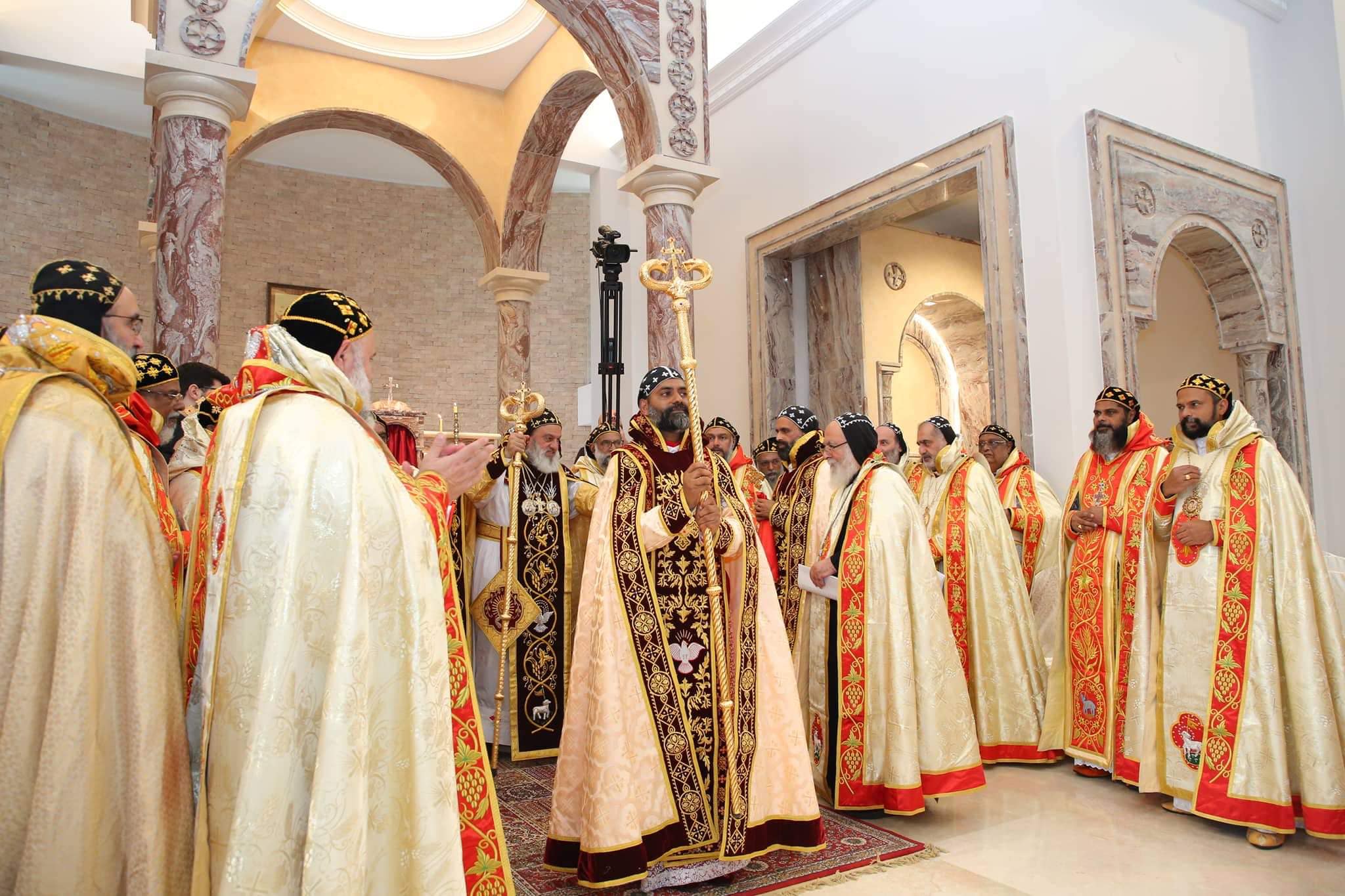 Durante la Divina Liturgia, según el rito de la Iglesia Siriana Ortodoxa de Antioquía, los nuevos arzobispos declararon su Fe Ortodoxa y la firmaron ante Su Santidad el Patriarca. Su Santidad rezó la oración de invocación del Espíritu Santo e imposición de manos. Puso su mano derecha sobre la cabeza de Raban Shibo y Raban Markose y los ordenó como arzobispos. Luego, Su Santidad dio a los nuevos arzobispos los nombres paternos Mor Stephanos y Mor Christophoros, y comenzó a ponerles las vestiduras obispales. Los nuevos Arzobispos se sentaron en la silla del obispado; Su Santidad puso su mano derecha sobre sus hombros y dijo tres veces: “Axios (digno)”, mientras la multitud de fieles repetía lo mismo cada vez. Luego, los nuevos arzobispos fueron llevados en la silla para leer la lectura especial de la Santa Biblia. Al final, Su Santidad les entregó el báculo (bastón pastoral).