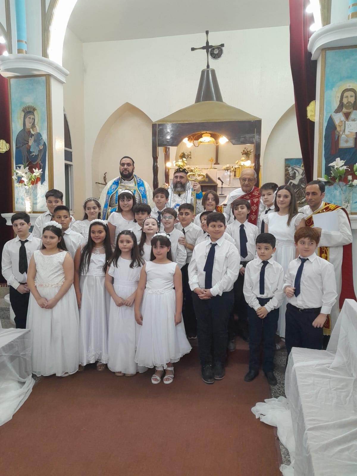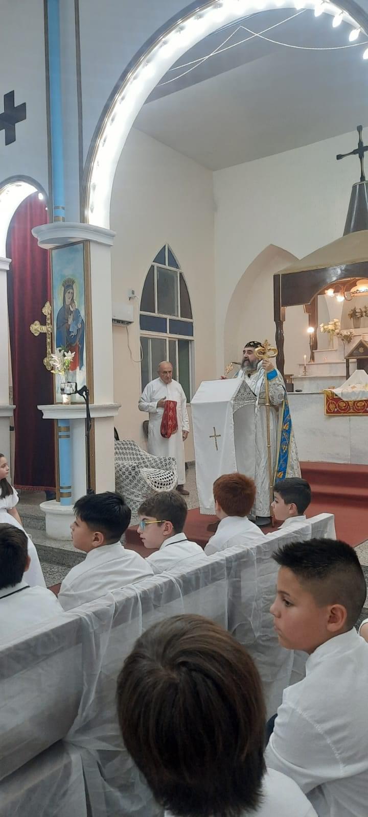 خلال القداس الالهي حصل 22 طفلاً من رعية مار جرجس على سر المناولة المقدسة.