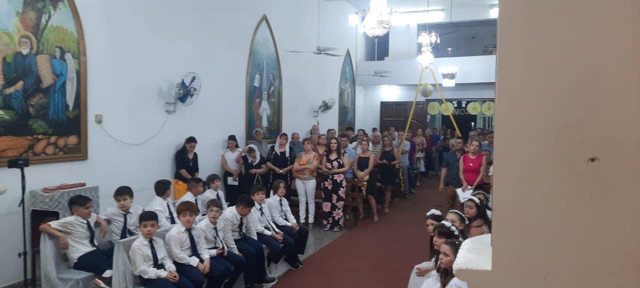 [19]Luego tomó el pan, dio gracias, lo partió y lo dio a sus discípulos, diciendo: «Esto es mi Cuerpo, que se entrega por ustedes. Hagan esto en memoria mía», llamando al pueblo de Dios a seguir firmemente en la fé y en su iglesia participando de la santa misa. Para los familiares el momento más emotivo de la ceremonia se dió cuando nuestros niños recibieron por primera vez a Cristo sacramentado en la santa comunión.