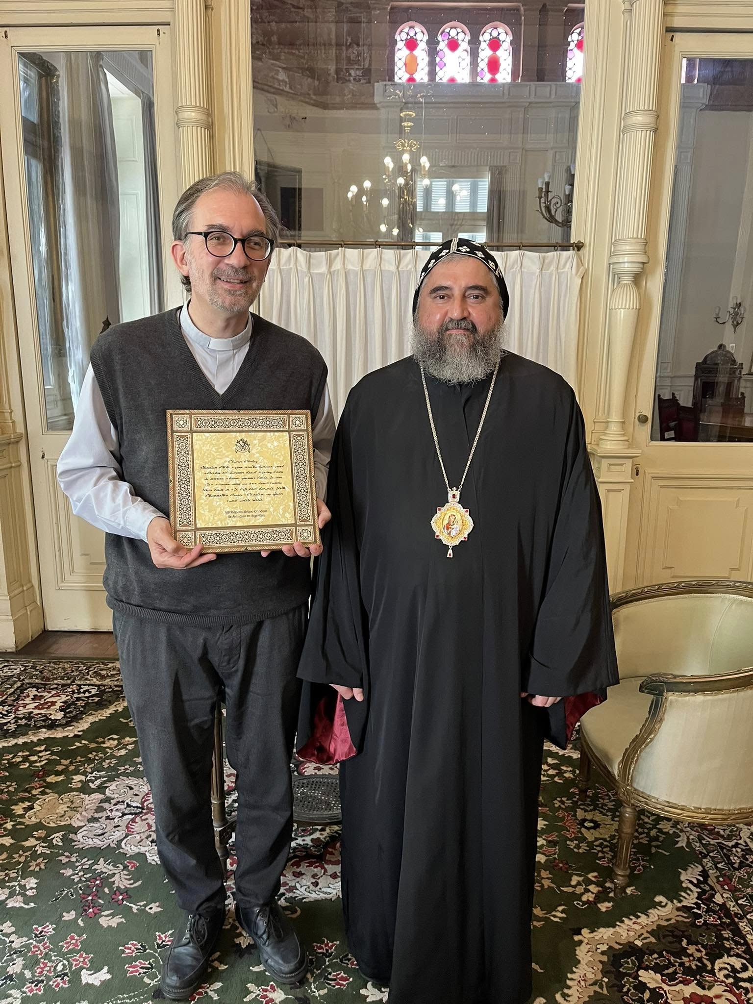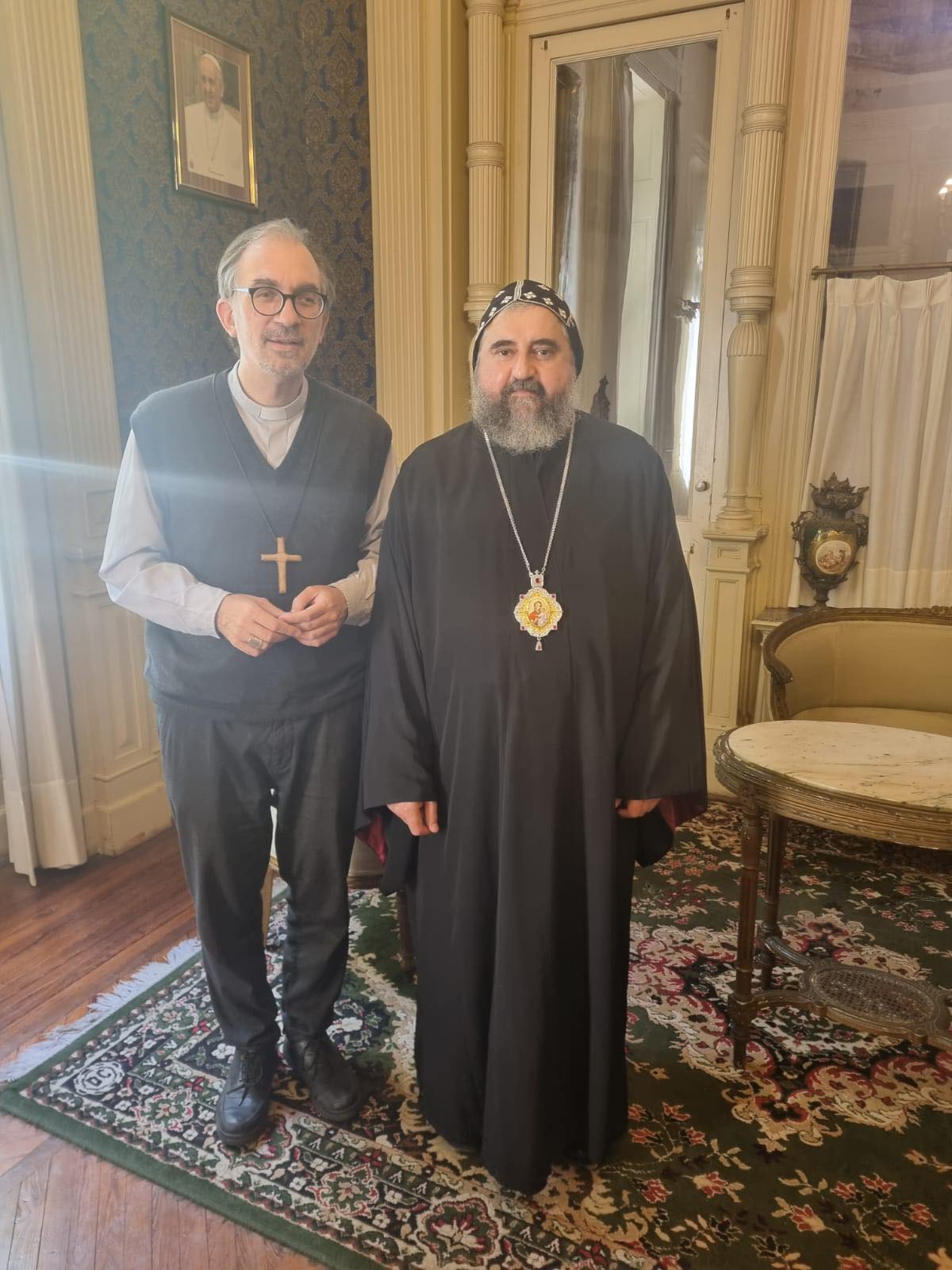 En dicho encuentro, dialogaron sobre la situación actual que vive el pueblo Sirio y el medio Oriente. Mons. Crisóstomo expresó sus mejores deseos en su servicio Pastoral y la bendición de Dios al nuevo Arzobispo Platense Mons. Gustavo, obsequiándole una placa del Padre nuestro escrito en Arameo.