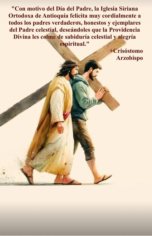 "Con motivo del Día del Padre, la Iglesia Siriana Ortodoxa de Antioquía felicita muy cordialmente a todos los padres verdaderos, honestos y ejemplares del Padre celestial, deseándoles que la Providencia Divina les colme de sabiduría celestial y alegría espiritual."